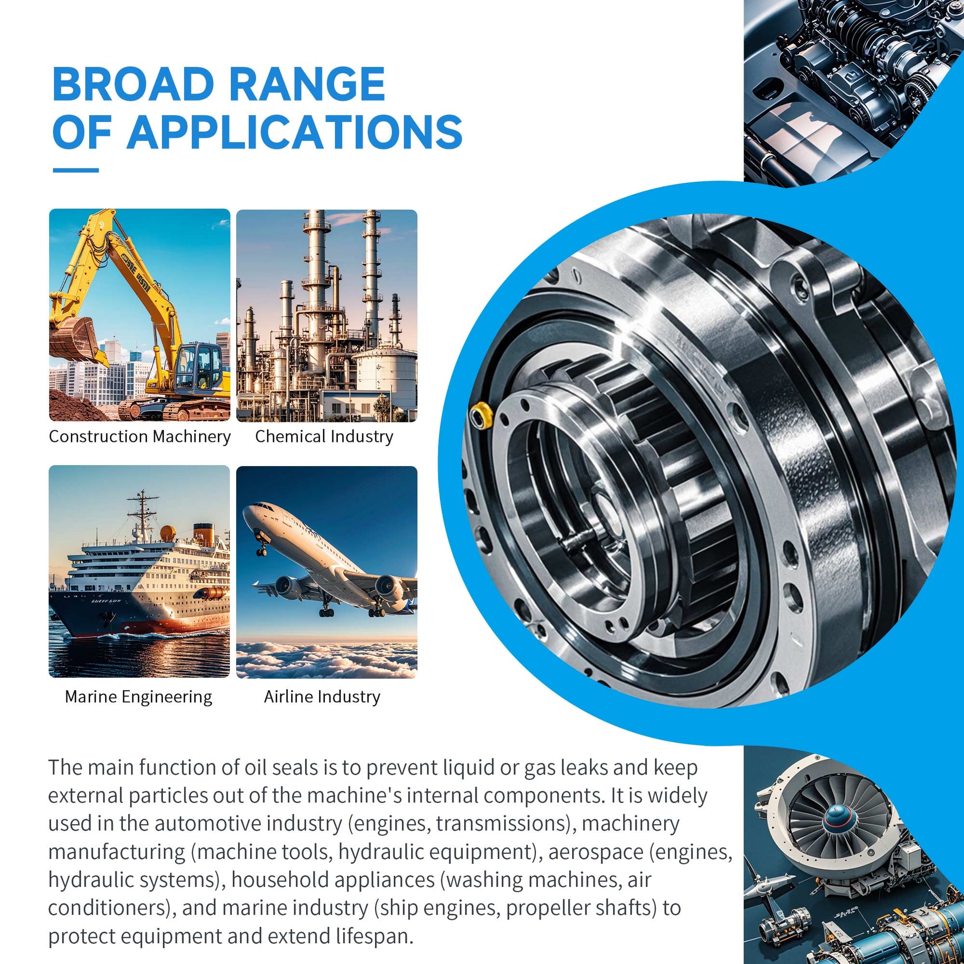Industrial Applications: Gearboxes, drive shafts, and other industrial rotating equipment requiring oil retention.